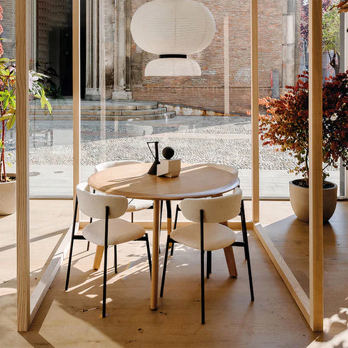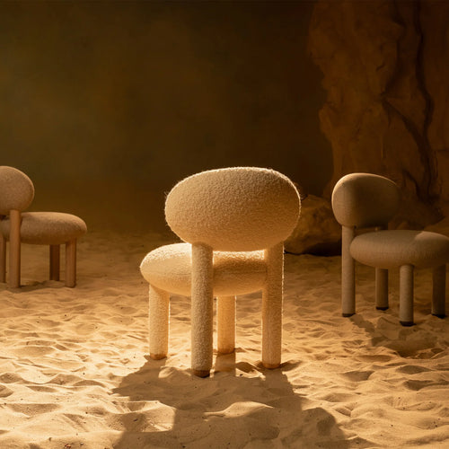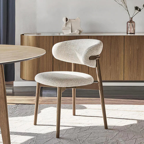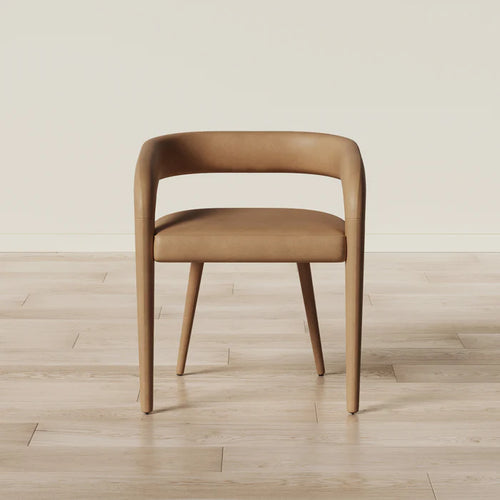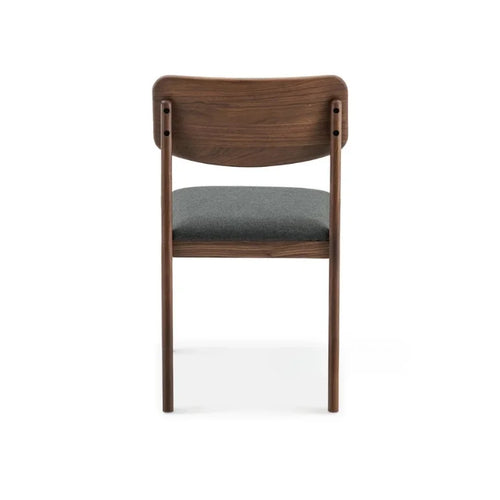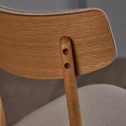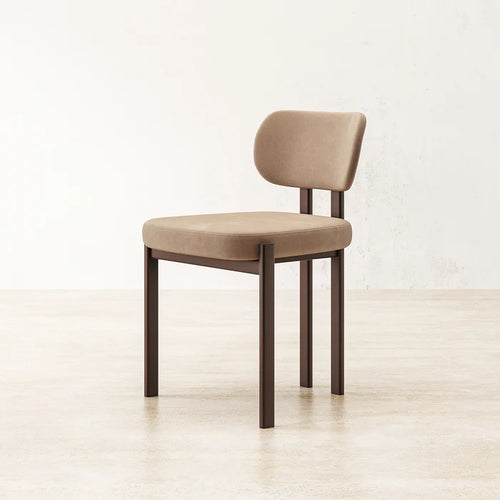 Angled view of Coper Dining Chair highlighting cushioned backrest, smooth curves, and minimalist frame