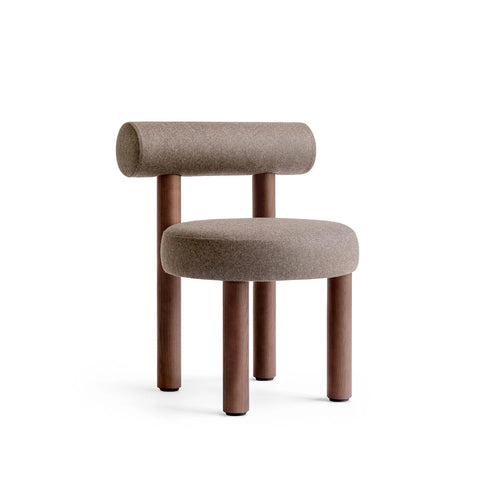 Coral Dining Chair featuring slim brown legs and cushioned upholstered seat