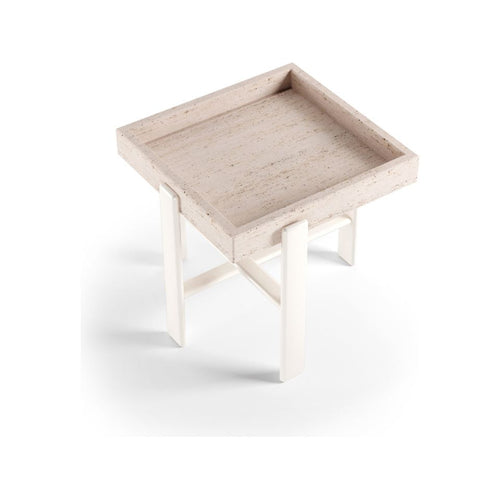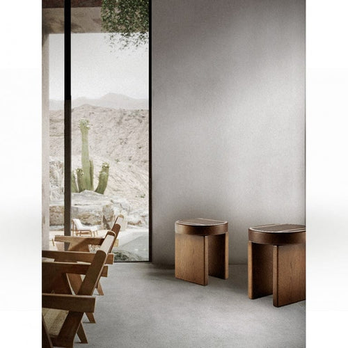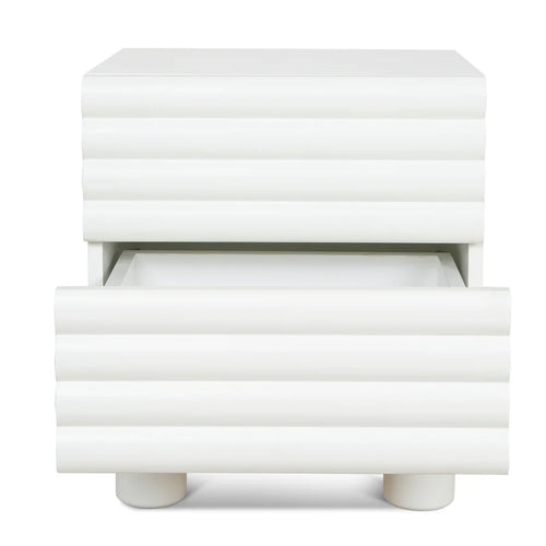 Side view of Orlando Bedside Table with raised wooden legs and compact rectangular shape