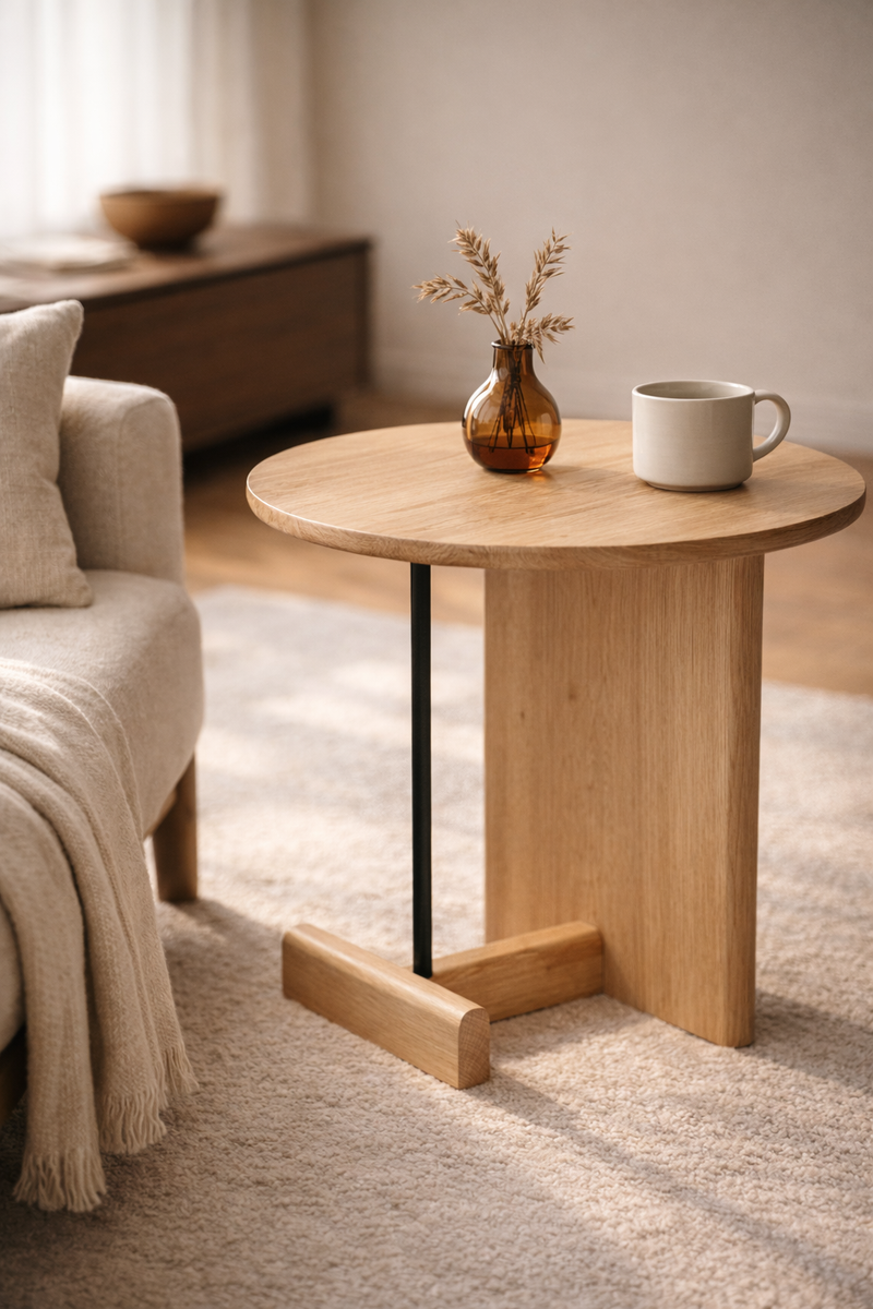 Craftsmanship and Inspiration: The Koku Side Table draws inspiration from revered American-Japanese craftsmanship, combining solid oak and thin metal tubes to create a sculptural masterpiece. The meticulous design captures a harmonious balance and offers an aesthetic that elevates any space.