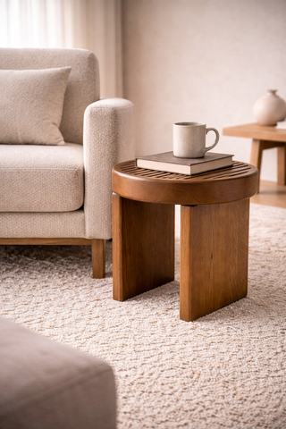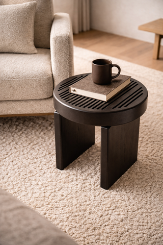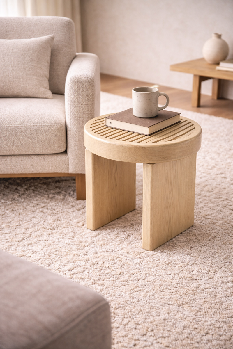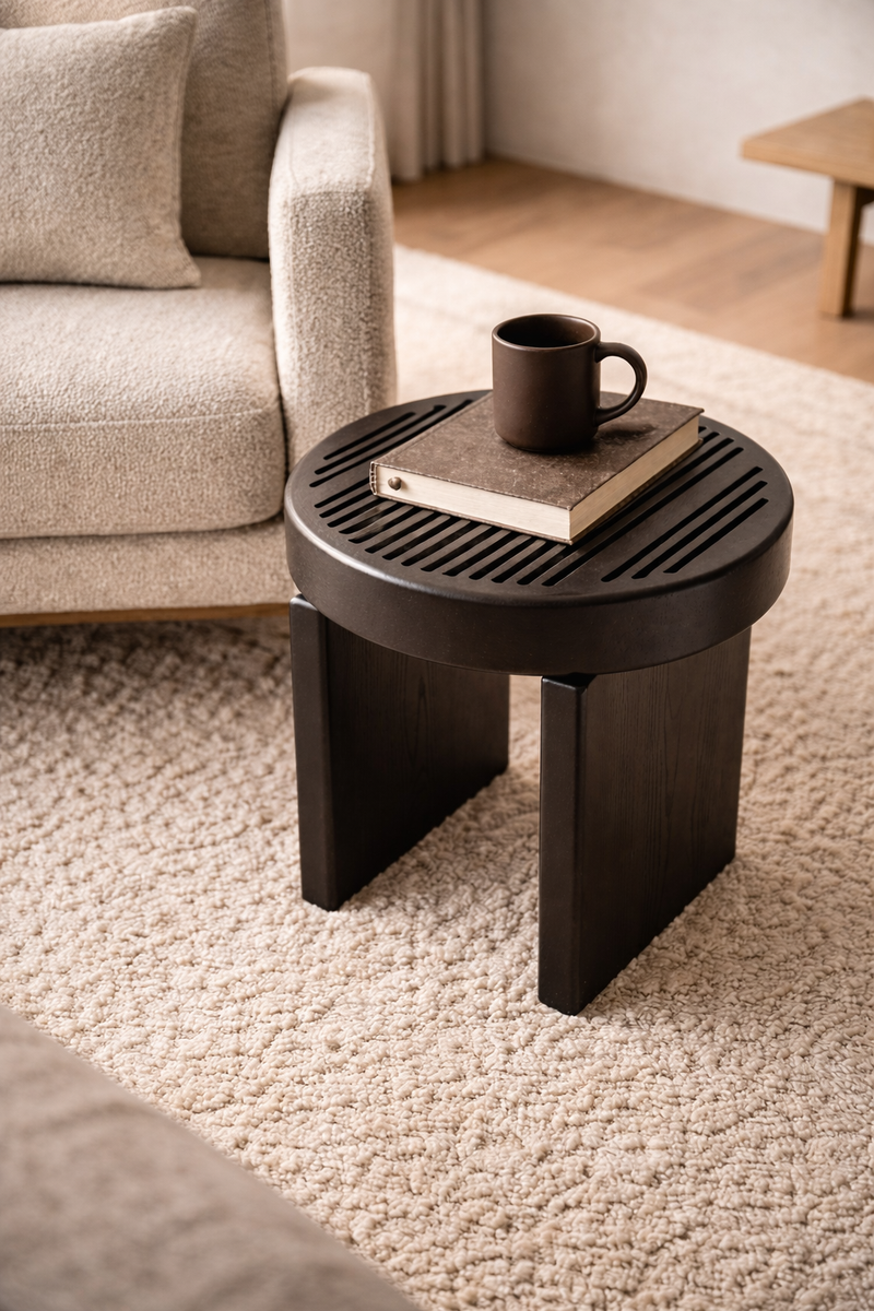 Rillo is a solid wood side table, softened by its straight lines sliced top. It has pure shapes and flowing surfaces. It come in two heights, multiplying its possible uses, such as a complement to the sofas or to armchairs. DIMENSIONS Rillos Big Ø 60 cm | 23,6″ H 35 cm | 14″ Rillos High Ø 42 cm | 17″ H 45 cm | 18″ PRODUCT FEATURES walnut Oak wood. PRODUCT OPTIONS Available in all COLLECTOR´s wood swatches. Available in Lacquered RAL colors, in matte or gloss.