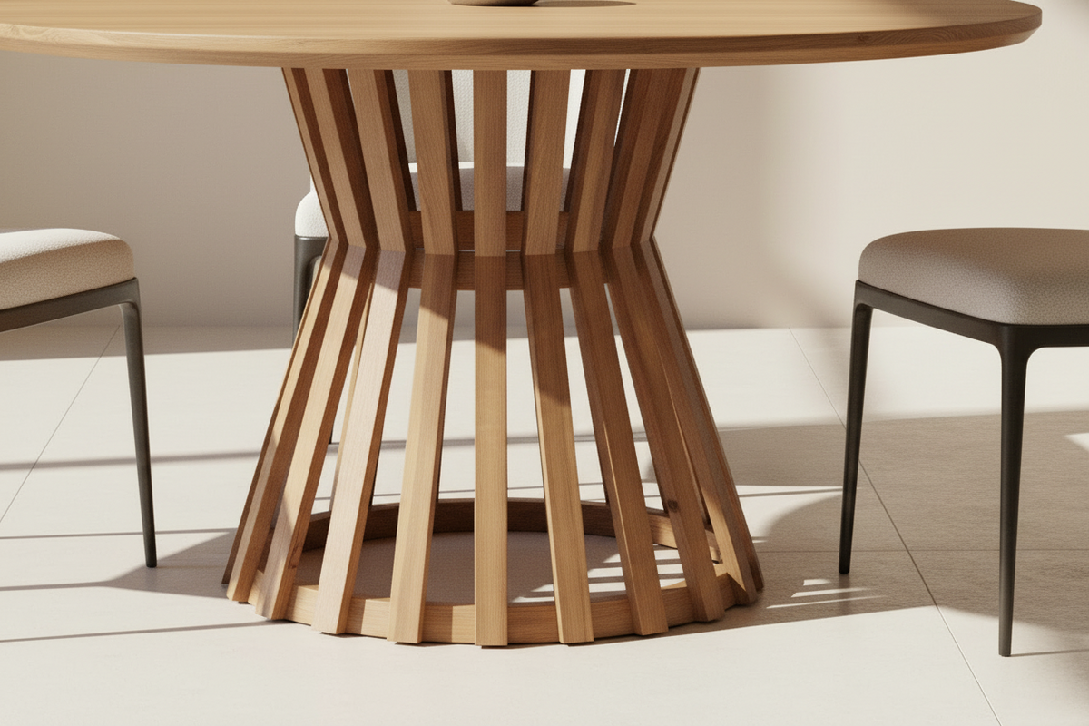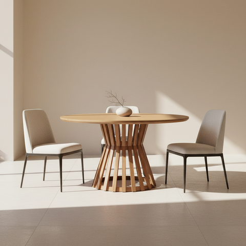 Select the curved and rustic design of Sarik Round Dining Table - Natural Light and construct a stylish and practical alfresco setting.