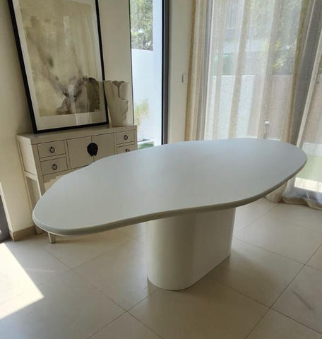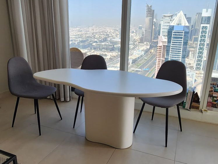 Elevate your dining experience with the Vebis Organic-Shaped Dining Tableβa harmonious blend of minimalist design and functional elegance. Its unique cloud-like silhouette and single-column base not only provide a contemporary aesthetic but also maximize legroom, making it a perfect centerpiece for modern interiors. Crafted with a waterproof fiberboard core and finished with a protective PU coating, this table ensures durability and resistance to daily wear. Available in White and Beige finishes, the Vebis table seamlessly complements a variety of dΓ©cor styles, offering both beauty and practicality for your dining space.