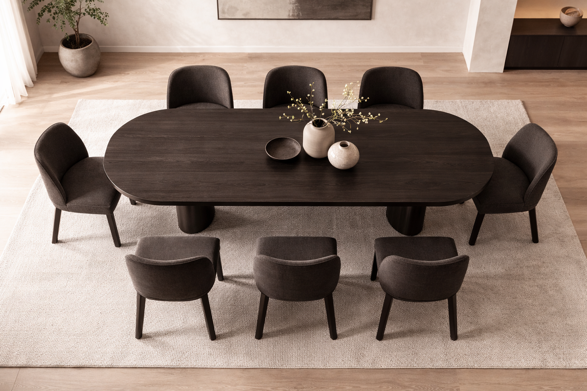 The Zora Ideale Dining Table celebrates the natural beauty of solid ash wood with a graceful, minimalist design. Its soft curved pillars add a touch of elegance, while the generous 2.4m length makes it perfect for both intimate family meals and stylish gatherings with friends.