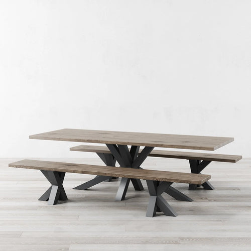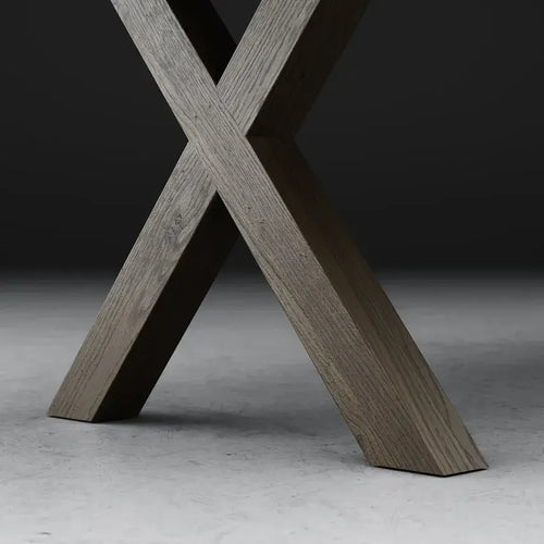 Neolle Silva dining table with rectangular top and sculpted X-leg base top side view
