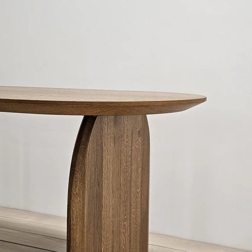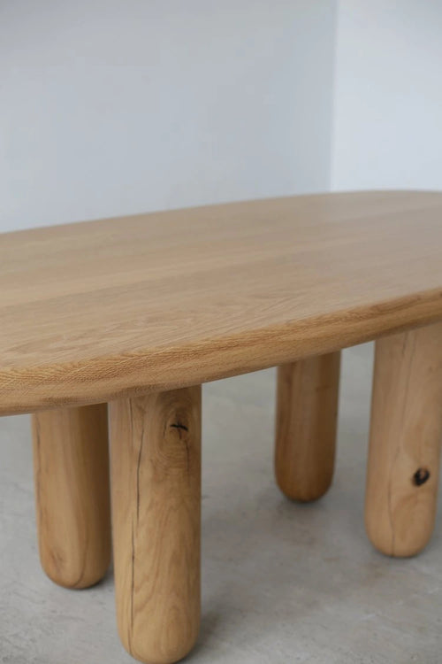 Nacht solid wood dining table with rounded capsule top and chunky legs