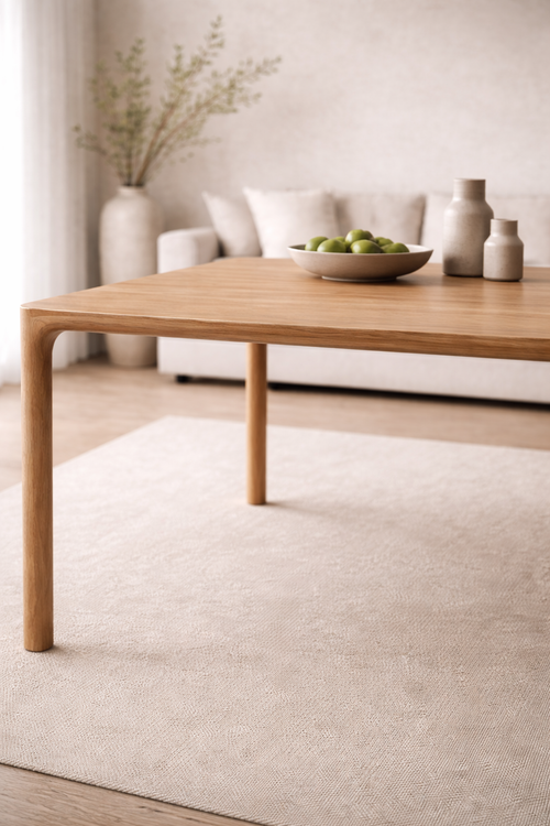 Dew Oak Dining Table styled in a modern dining room in UAE