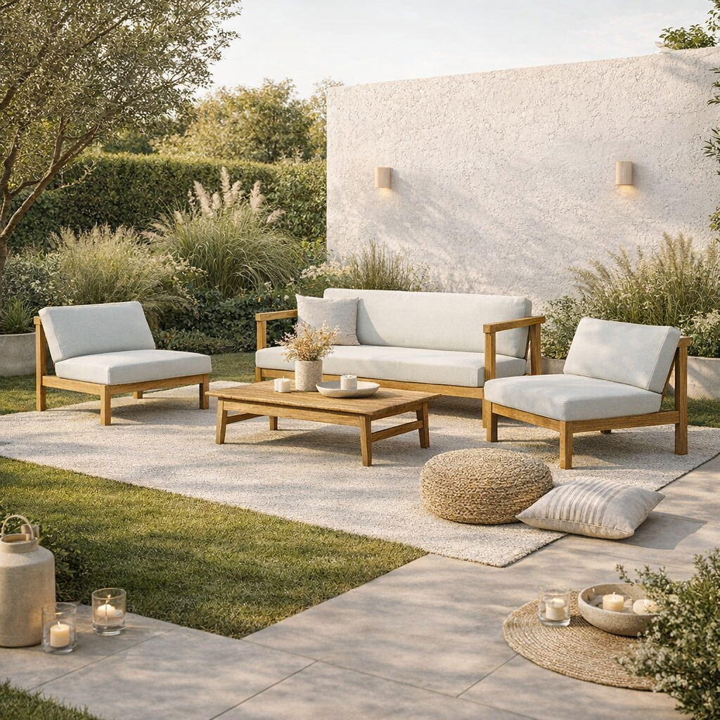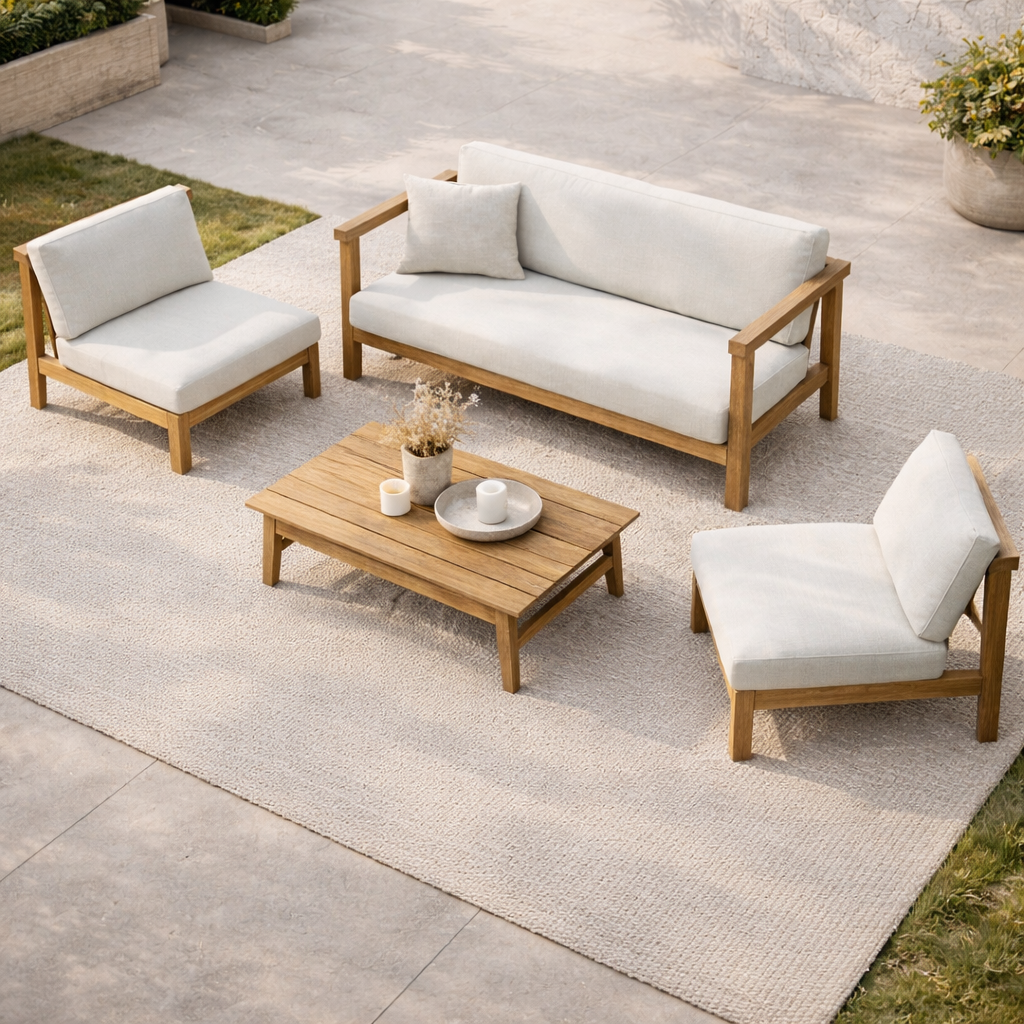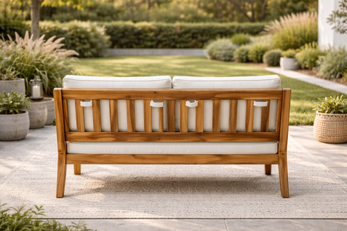 Introducing our Veronica 4-Person Outdoor Seating, crafted from solid teak wood for a natural luxe ambiance. This set includes one sofa, one armless sofa, all boasting a modern, low-profile design. With wider seats perfect for cozying up, accompanied by six cushions in natural white with machine-washable, removable covers, it's effortless to create the ideal outdoor lounge space. Complementing all design schemes, from traditional to modern to glam, this set ensures both comfort and style for your outdoor oasis.