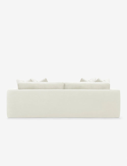 Straight-on image of the Mills Sofa emphasizing its modern silhouette and soft cushioning