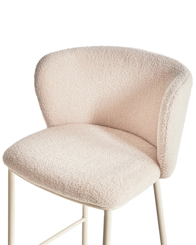 The Arven Bar Stool is designed to bring style and comfort to your bar area. Upholstered in soft boucle fabric, it offers a cozy textured seat with a slightly curved backrest for added support. The beige powder-coated legs provide a warm, modern look while ensuring durability, and the built-in footrest makes sitting more comfortable. With its refined design, Arven is the perfect blend of function and sophistication for contemporary interiors.