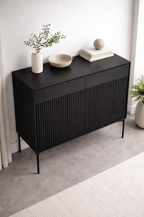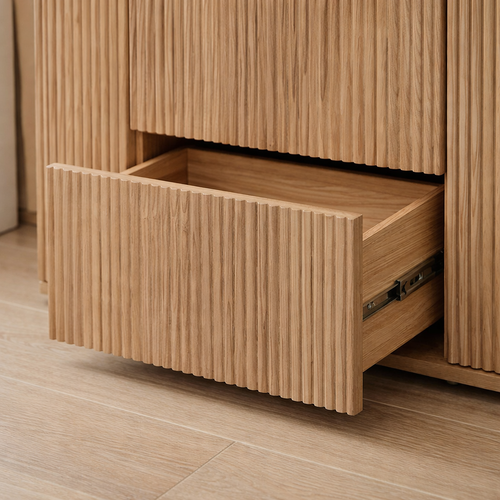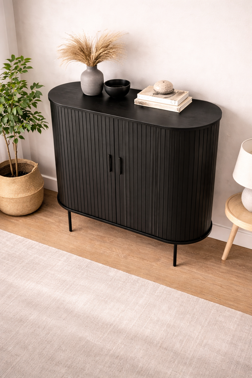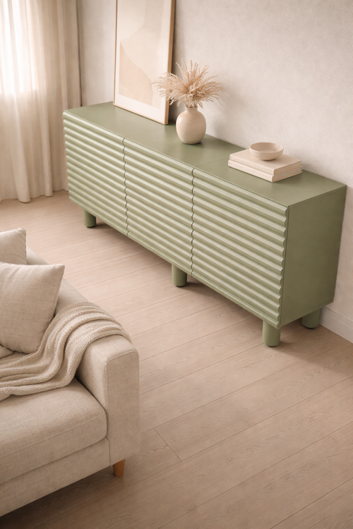 Skuld sideboard cabinet in warm cream with solid wood legs
