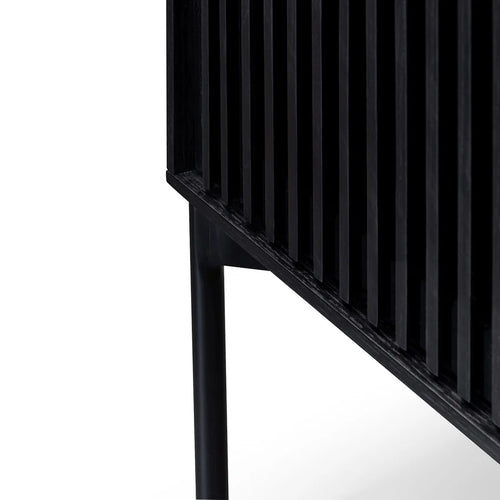 Meta black fluted sideboard with modern matte PU finish, Front view