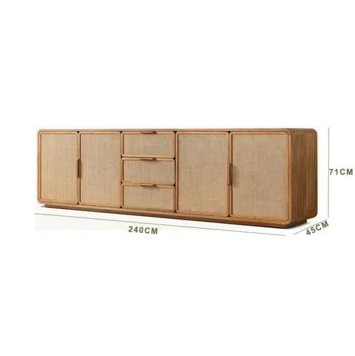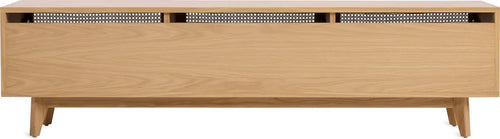 Straight-on image of Funky Rattan Media Console emphasizing timeless rattan design and modern structure