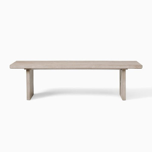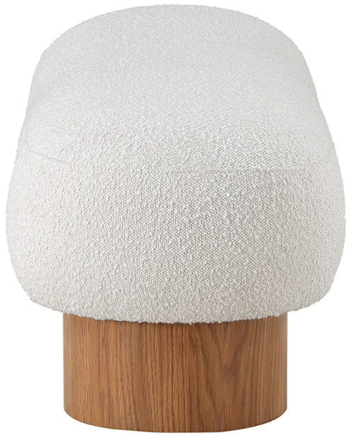 Introducing the Century Bench, a timeless piece inspired by Mid-Century design, featuring light wood framing and an inviting off-white boucle seat.